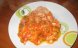 Pieptul de pui il taiem felii. Il punem intr-o tigaie la prajit in cateva linguri de ulei de masline. Cand incepe sa se rumeneasca punem usturoiul taiat in 4, sare, piper si boia de ardei, dupa gust.