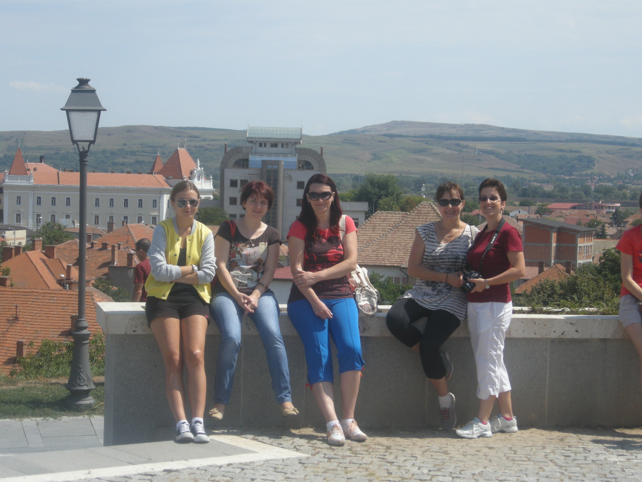 Oana, frumoasa Menei >:D<, Gaby, Timea, Mena si Anca (Postavaru), cu zimbetul pe buze, la Alba iulia, inainte de a intra in santurile Cetatii :)))