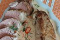 Se lasa la scurs, se taie bucati si se pune la fiert in apa cu o lamaie taiata cuburi sau felii, Aducem la punctul de fierbere,...