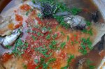 Pentru început se pregăteşte peştele. Se curaţă de solzi (după caz), se taie de-a lungul "burţii", se curăţă în interior de toate cele (organele se pot păstra pentru ciorbă), se scot branhiile şi se spală bucăţile de peşte sub un jet de apă rece. De data asta eu...