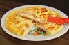 Placinta cu foi de cartof, sunca si cascaval, la tigaie