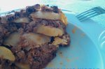 Ca t au fiert cartofii am pregatit amestecul de carne. Am pus la calit legumele, apoi am adaugat carnea tocata. Cand si-a schimbat culoarea am pus boia, delikat,...