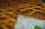 Intai preparam aluatul amestecand toate ingredientele. Obtinem un aluat elastic pe care il impartim in doua: trei sferturi pentru baza tartei si din sfertul ramas von decupa grilajul la final. Umplutura se prepara astfel: spalam si curatam legumele. Ceapa, ardeiul si dovlecelul se trec prin...