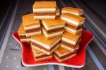 Pentru foi : amestecam cu mainile, intr-un bol faina, praful de copt si untul , apoi adaugam zaharul, galbenusurile cate unul pe rand, iar la final laptele; framantam pana cand coca se dezlipeste de pe maini. Impartim coca in 3 parti si coacem 3 foi pe fundul unei tavi (d=23*35 cm) Pentru...