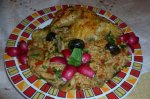 deci: am fiert pe jumatate pulpitele in apa cu vegeta. si morcovul am taiat ceapa si ardeiul marunt, am lasat la calit putin apoi am adaugat pasta de rosii si o canita de apa, am adaugat mazarea congetlata, am sarat is am lasat la fiert. cand mazarea s-a fiert pe jumatate, am adaugat si...