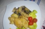 Cartofii se curata, se spala, se portioneaza si se pun la fiert in apa cu sare. Pana fierb cartofii, intr-o tigaie punem in 30 ml ulei (pe care l-am lasat la incins inainte) ceapa taiata mai mare la calit cu condimentele. Dupa ce cartofii s-au fiert, se scurg si se pun...