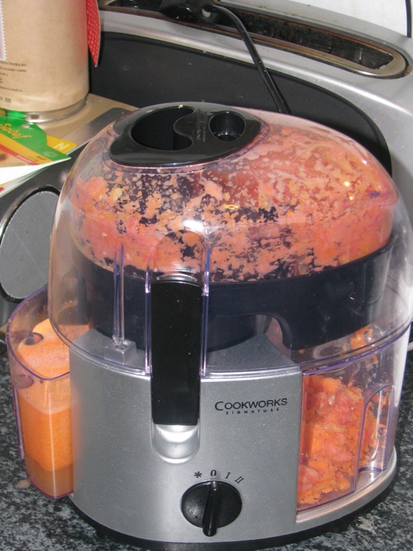 Nu este un aparat pe îl folosesc des, nici nu este prea vechi în bucătăria mea, însă uneori îl pun în aplicare atunci când am poftă de un pahar de vitamine pure. Aparatul are două vase separate de colectare, unul mai mare, pentru pulpă, și unul mai mic, de 400 ml, pentru sucul obținut. Unele aparate nu oferă container pentru colectarea sucului, atenție, ci doar pentru pulpă.