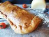 Desfacem aluatul de foietaj si ungem foaia cu ulei, punem merele (le stoarcem in pumn ca sa scoatem sucul de mere inainte de a le aseza...