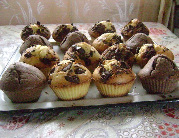 Brioşe cu esenţă de migdale şi cubuleţe de ciocolată-1