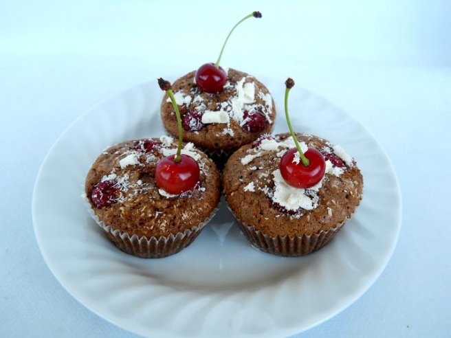 Brioşe negrese cu ciocolată, vişine şi cocos