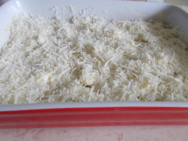 Budinca sarata, cu paste si branzeturi-9