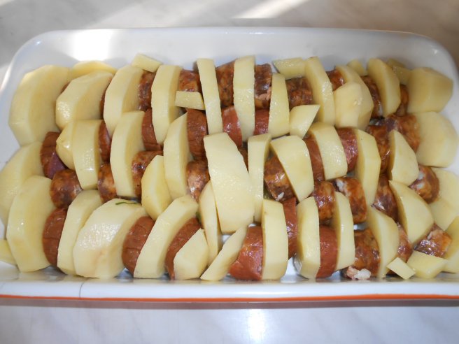 Cartofi cu carnati la cuptor-0