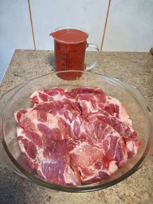 Ceafa de porc la cuptor cu sos de rosii si usturoi