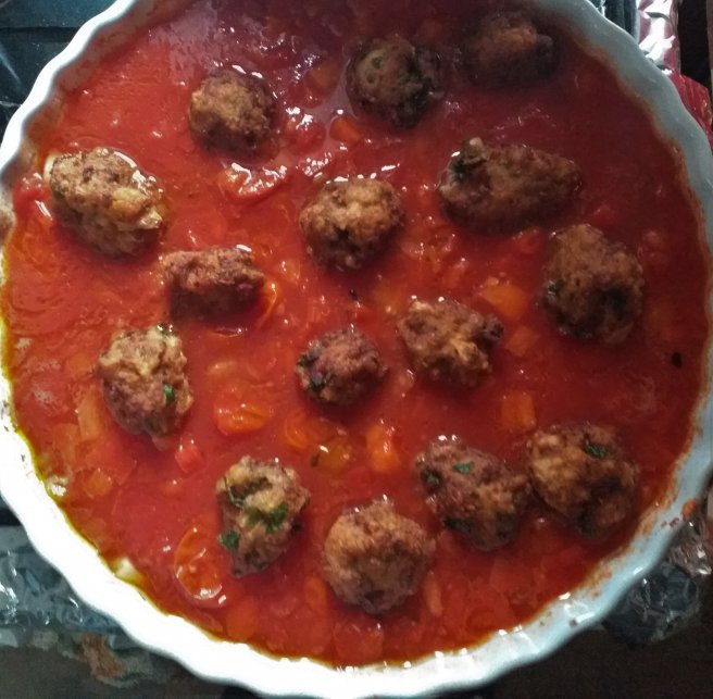 Chiftele in sos de rosii cu mozzarela la cuptor