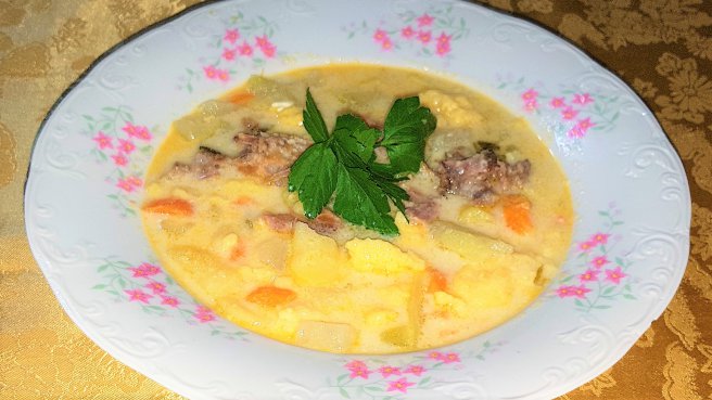Ciorba cu gulie, afumatura si smantana