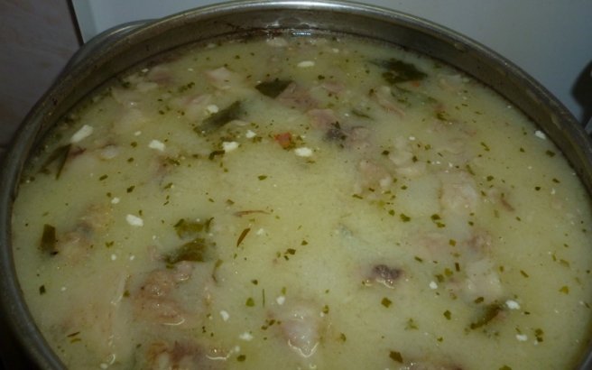 Ciorba din cap de vitel cu spanac , orez si tarhon