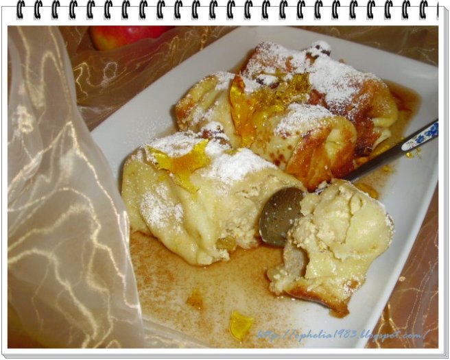Clatite cu ricotta si mere caramelizate in sos de scortisoara