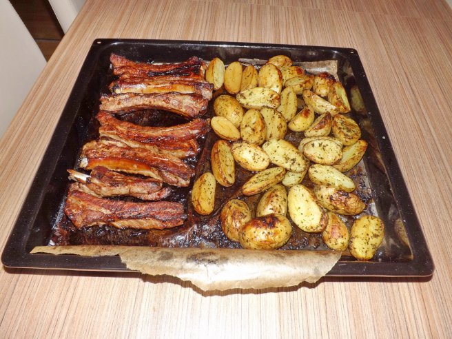 Coaste de porc dulci-picante cu garnitura de cartofi noi-0