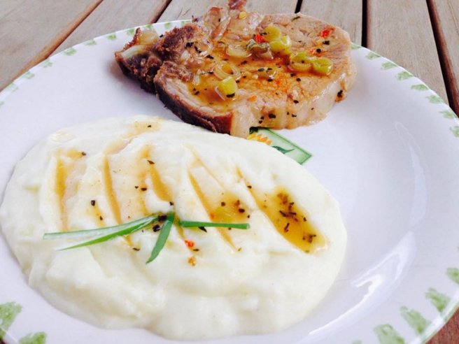 Cotlet de porc in sos de unt cu ceapa verde si piure