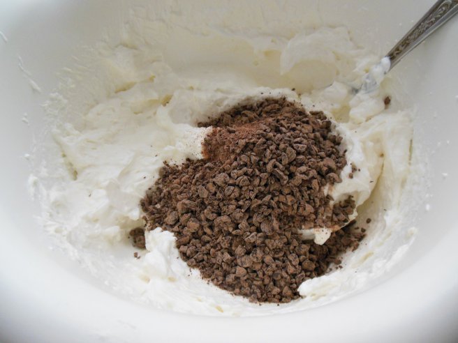 Desert prajitura cu crema straciatella, visine si krantz de migdale-2