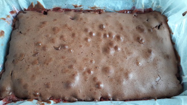 Desert prajitura rasturnata cu rubarba, capsuni si visine