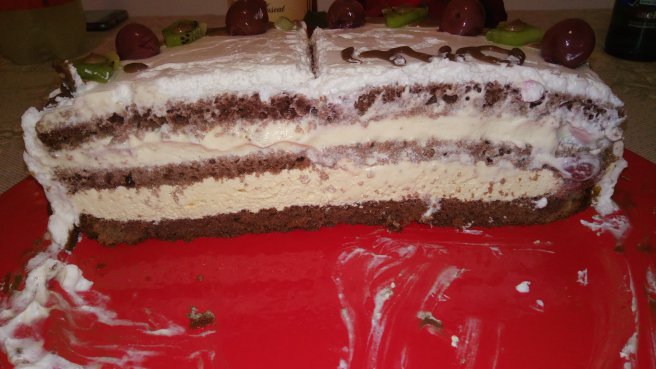 Desert tort aniversar cu turron si visinata