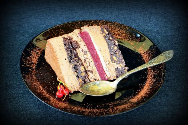 Desert tort cu mousse de ciocolata neagra si jeleu de fructe rosii-0