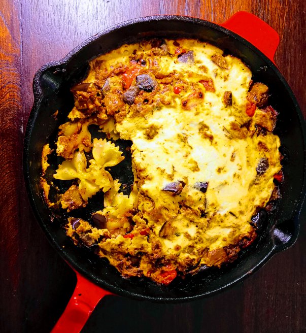 Farfalle la cuptor cu vinete si sos de iaurt cu branza Feta
