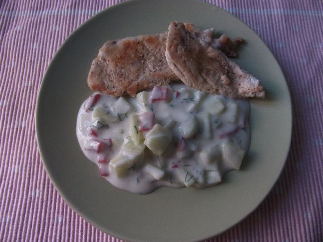Gratar de pui cu sos de iaurt , castravete si ardei-2