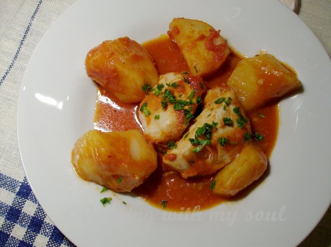 Mancare de cartofi cu pui si usturoi