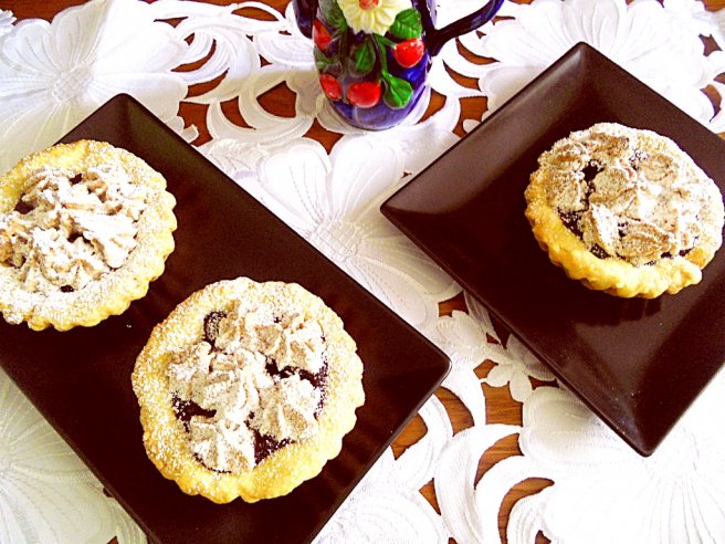 Mini tarte cu jeleu de fructe,nuca şi bezea