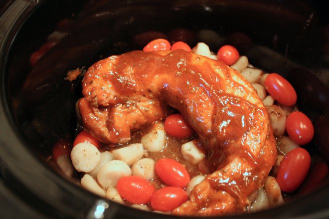 Muschiulet de porc cu castane de apa si rosii cherry la slow cooker Crock-Pot-1