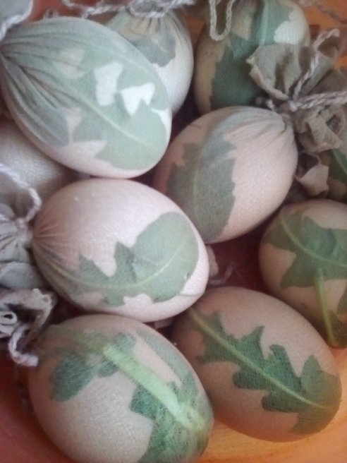 Oua vopsite cu coji de ceapa si decorate cu frunze de plante-0