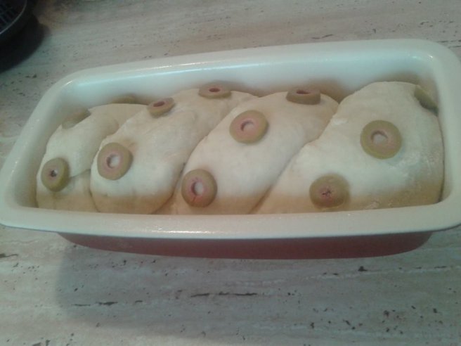 Paine cu cartofi , cascaval si masline-2