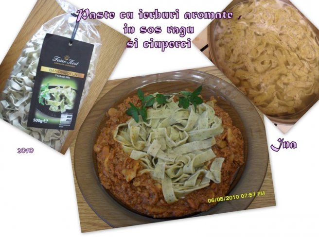 Paste cu ierburi aromate, in sos ragu si ciuperci
