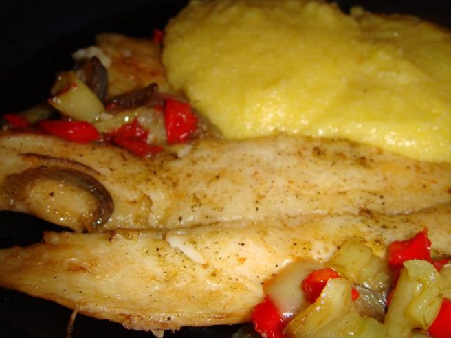 Peste pangasius la cuptor, cu legume si mamaliguta