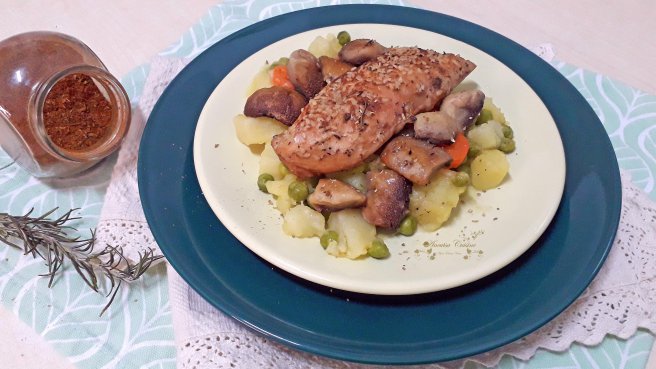 Piept de pui umplut cu mozzarella, cu garnitura de sote-1
