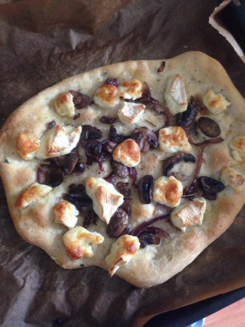 Pizza cu ciuperci, ceapa caramelizata si Brie