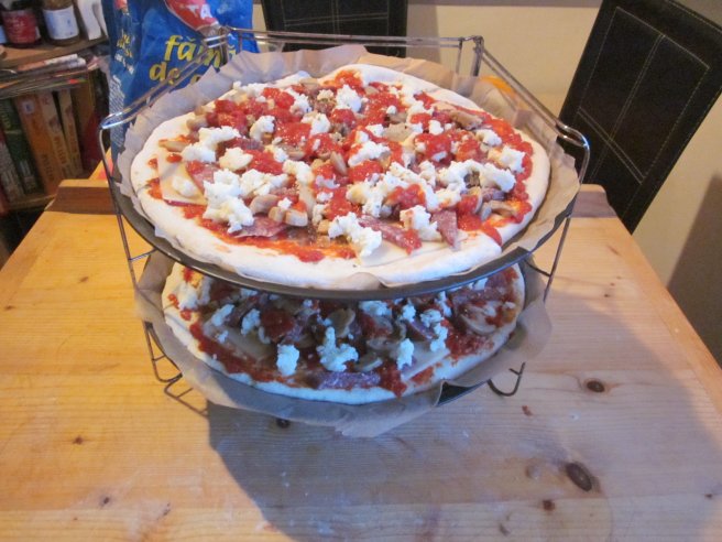 Pizza cu salam crud-uscat, ciuperci si branza de burduf-2
