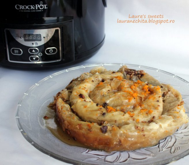 Placinta invartita, cu nuca, ciocolata si sirop de zahar ars la slow cooker Crock-Pot 4,7 L