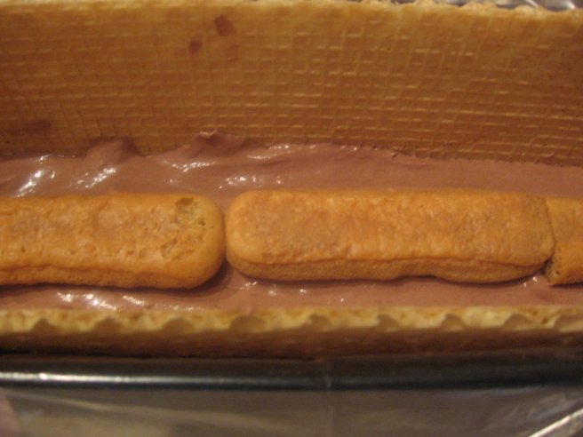 Prajitura "Acoperis de casa", cu piscoturi si crema de ciocolata