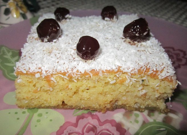 Prajitura cu gris, cocos si cirese