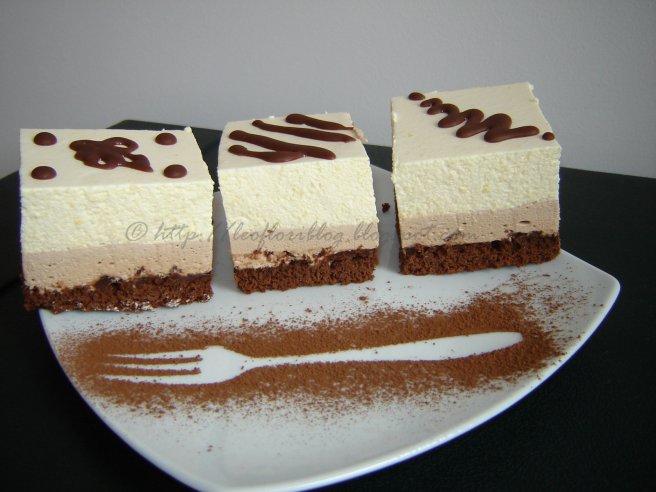 Prajitura cu mousse de ciocolata si mousse de piersici