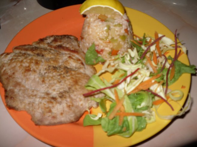 Pulpa de porc la gratar cu orez si ardei in 3 culori