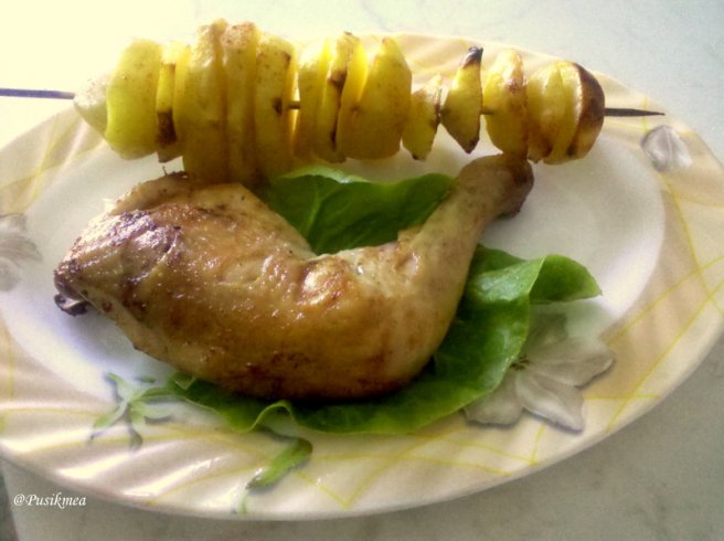 Pulpe de pui cu frigarui de cartofi la cuptor
