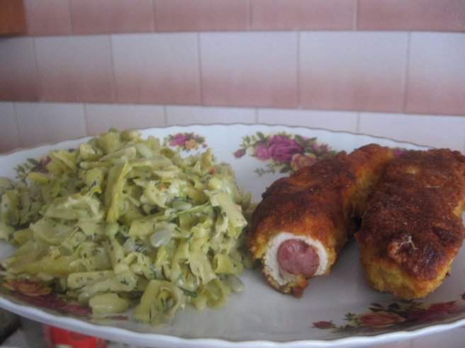 Rulou din piept de pui cu carnat la mijloc