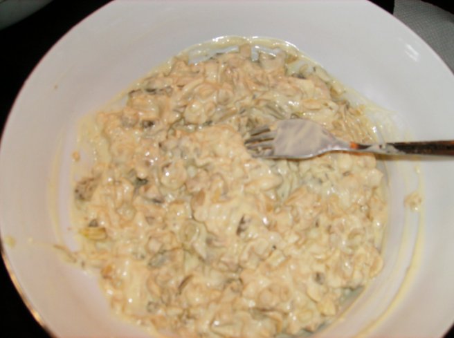 Salata de ciuperci cu castraveti acri, usturoi si maioneza