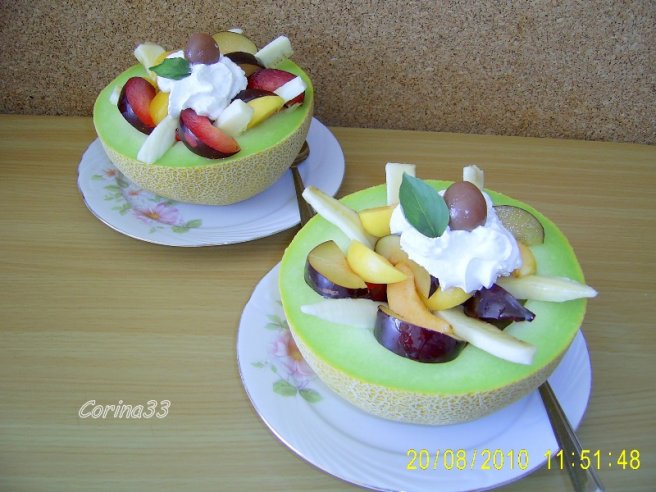 Salata de fructe in jumatati de pepene