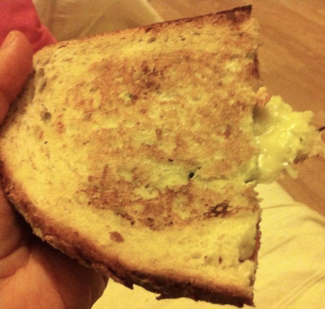 Sandwich la tigaie cu cascaval, bacon crocant si guacamole-2
