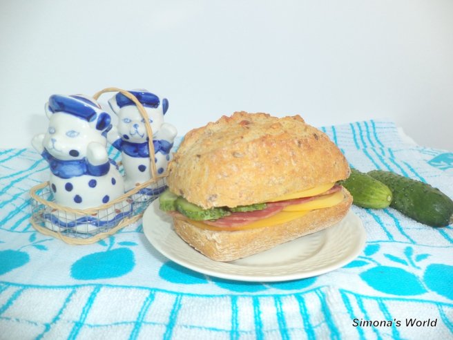 Sandwish simplu cu cascaval afumat si salam spaniol-2